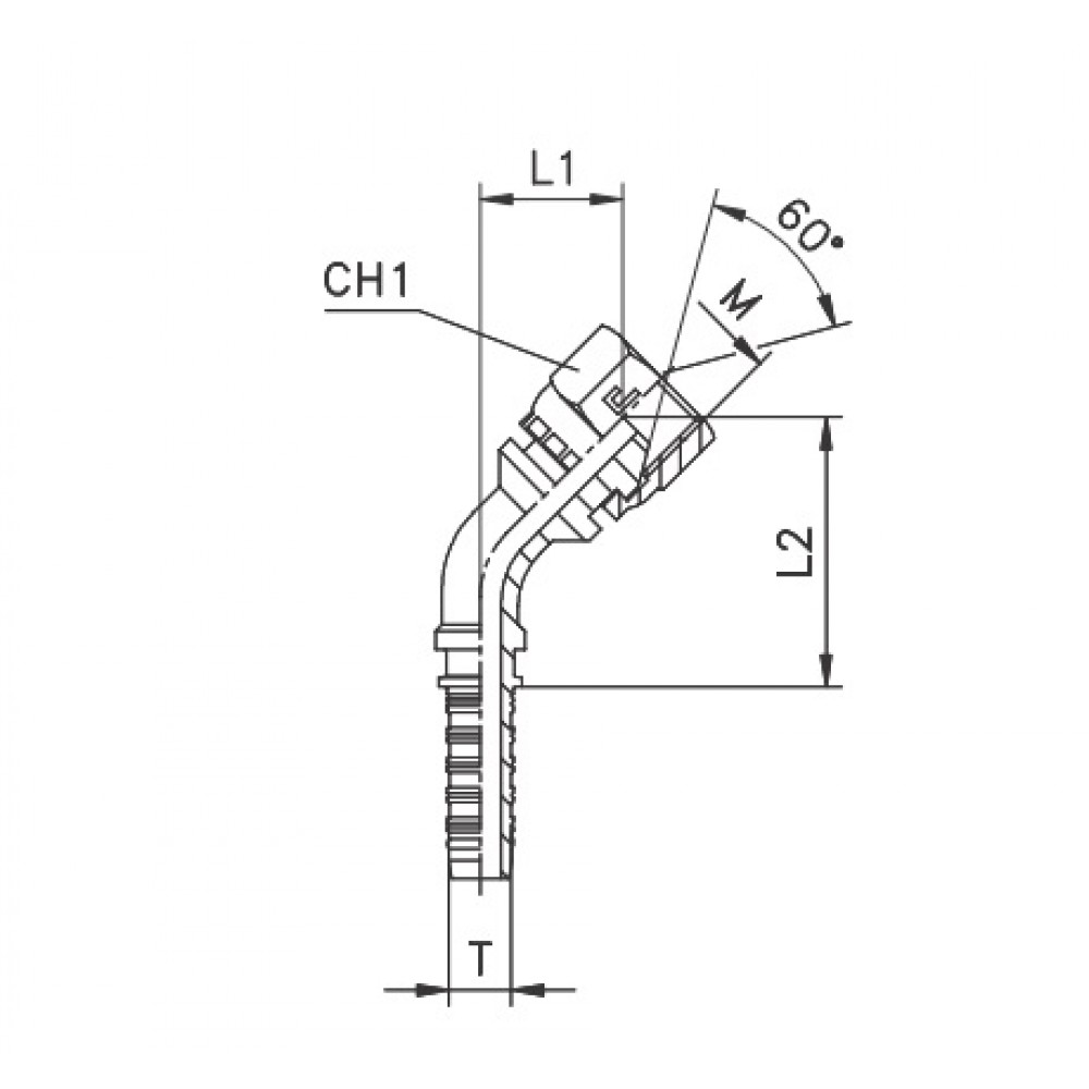 Фитинг для РВД DKM угол 45°, предварительно обжатая гайка, конус 60°- ISO 8434-6 (BS 5200)