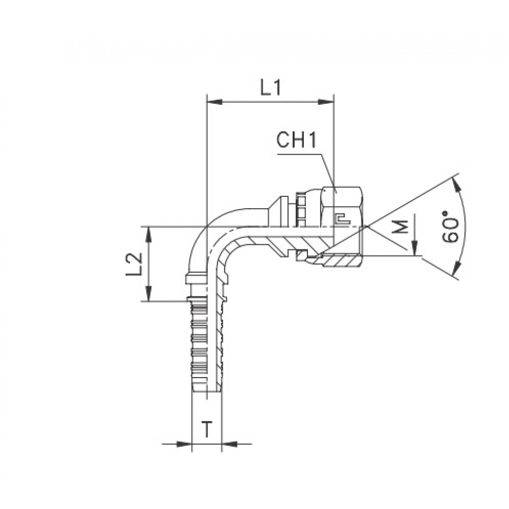 Фитинг для РВД DKM угол 90°, предварительно обжатая гайка, конус 60°- ISO 8434-6 (BS 5200)