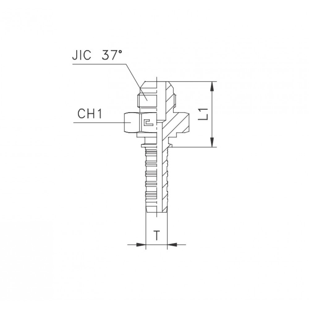 Внутренний диаметр рукава | Диаметр трубы JIC 37° | JIC 37° | L1 | CH1 | PN (бар) | |||