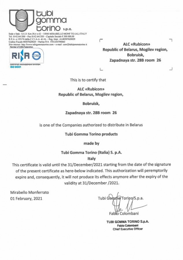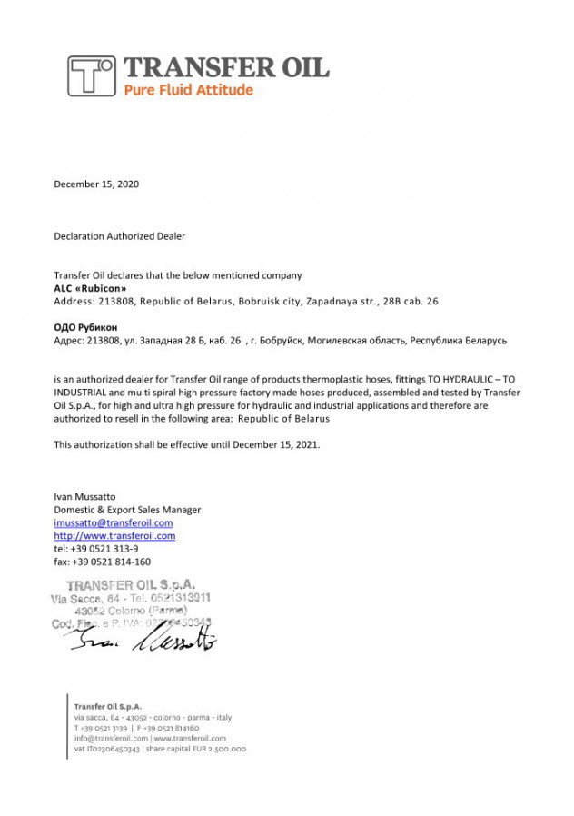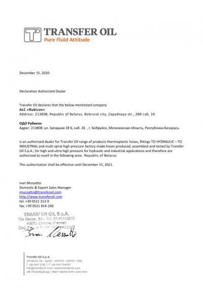 Transferoil DECLARATION AUTHORIZED DEALER RUBICON